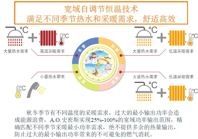 特有的電子比例閥帶來(lái)寬域線性功率調(diào)節(jié)范圍,精確匹配不同使用習(xí)慣和不同環(huán)境溫度下采暖熱需求,節(jié)能高效