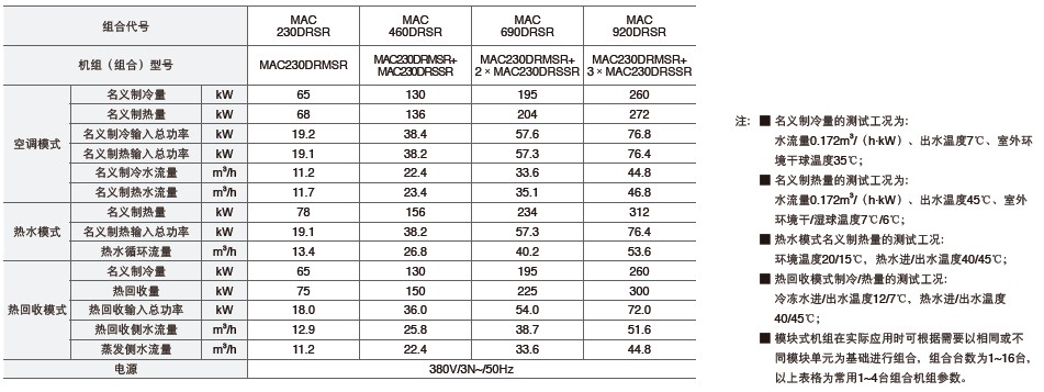 ■ 機組集空調(diào)制冷、空調(diào)制熱、制冷熱回收、熱泵制熱水、空調(diào)優(yōu)先熱水五種模式于一身。