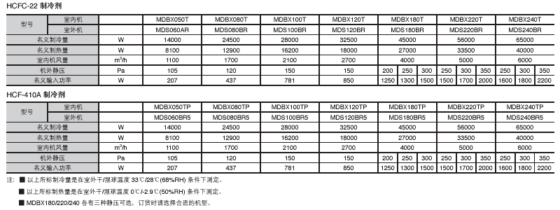 ̖MDBX050T~MDBX240T MDBX050TP~MDBX240TP 14~65kW Ɵ8.1~40kW 䄩HCFC-22 HFC-410A L(fng)1100~6000m3 /h