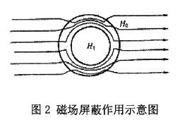 磁場由磁體產生,由磁體的N*指向S*,在磁體的外部形成閉合的形式,距離轄射源越近,磁場強度越強。磁場的屏蔽的原理是利用磁性屏蔽材料,改變磁場的方向,由于磁場通過低磁阻的通路被旁路掉,因此可保證被屏蔽的物體不受磁場的干擾影響。磁場屏蔽分為靜磁屏蔽和電磁屏蔽。靜磁場是穩恒電流或永久磁體產生的磁場,靜磁屏蔽是利用高磁導率M的鐵磁材料做成屏蔽罩以屏蔽外磁場,靜磁屏蔽的原理可以用磁路的概念來說明,如將鐵磁材料做成截面如圖2的回路,則在外磁場中,絕大部分磁場集中在鐵磁回路中。這可以把鐵磁材料與空腔中的空氣作為并聯磁路來分析。因為鐵磁材料的磁導率比空氣的磁導率要大幾千倍,所以空腔的磁阻比鐵磁材料的磁阻大得多,外磁場的磁感應線的絕大部份將沿著鐵磁材料壁內通過,而進入空腔的磁通量*少。這樣,被鐵磁材料屏蔽的空腔就基本上沒有外磁場,從而達到靜磁屏蔽的目的。