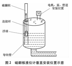 耐高溫磁翻板液位計安裝位置的選擇應根據該點的液位是否能真實反應酸槽實際液位。酸槽上耐高溫磁翻板液位計垂直安裝位置的選擇如圖2所示。