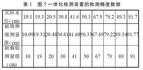 我們把圖5 所示的一體化檢測裝置進行了水位檢測實驗, 其檢測結(jié)果與實際水位值見表1。