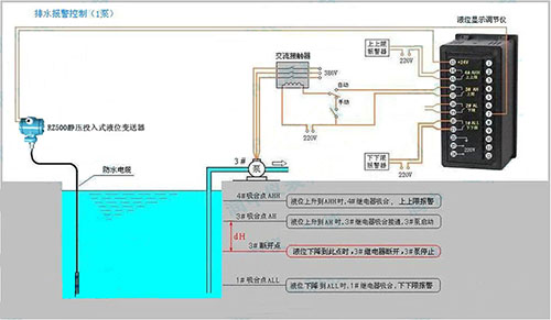 地面排水控制系統主要用于實現兩臺軸流排水泵的啟停,排出地面水收集地坑的水。控制系統通過測量地坑液位,當液位高度達到*一啟泵設定值時,啟動1臺排水泵進行排水,當液位高度達到*二啟泵設定值時,啟動另1臺排水泵進行排水,當液位降到停泵液位時,停止排水泵運行。