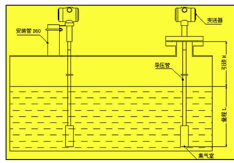 在容量比較法中標準罐本身就存在誤差,而幾何測量法是在空罐的情況下測量的,裝液后罐底量一定會有不同程度的沉降,所以要對其作進一步的修正。這就要求能在線測量罐底量隨液位高度增加引起的變化。為此,本文提出了一種新的實時測量方法:酸液液位計法。