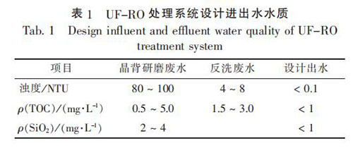 國內某磁翻板液位計廠, 晶背研磨廢水產生量為 150 ~160 m3 / d, 反洗廢水產生量 為 500 ~ 700 m3 / d, 主要污染物為懸浮物, UF-RO 處理系統設計進水和出水主要水質指標見表 1。