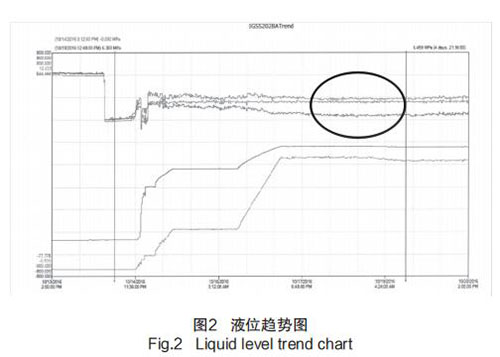 疏水箱內水位持續擾動對導波桿形成沖擊,壓力高、振動大,導波桿晃動可能造成測量不準。發生概率級別:I。