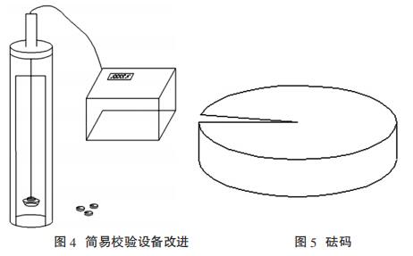 因?yàn)檎裣沂絺鞲衅鳎?重要的核心就是弦,從基本原理入手,采用加 載砝碼的方法進(jìn)行率定,每個(gè)砝碼固定重量為 300g,*多添加砝碼個(gè)數(shù) 為 6 個(gè),總量可達(dá) 1800g。砝碼較多時(shí),需要很長時(shí)間穩(wěn)定。為了提高系統(tǒng) 穩(wěn)定性,減少系統(tǒng)穩(wěn)定時(shí)間,因此對(duì)簡易校驗(yàn)裝置進(jìn)行改進(jìn),如圖 4、圖 5所示。
