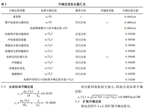 3. 2. 8 數(shù)據(jù)修約引入的標(biāo)準(zhǔn)不確定度 u8 ( LP ) 用 B 類標(biāo)準(zhǔn)不確定度評定。這里假設(shè)其半寬區(qū)間為0.05dB,按均勻分布考慮,取包含因子 k =/3,則: u8 ( LP ) = 0. 05/3≈0.029dB因此,標(biāo)準(zhǔn)聲壓級引入的標(biāo)準(zhǔn)不確定度分量為: