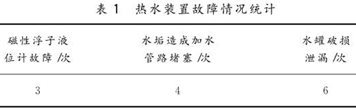 通過(guò)多年的使用,總結(jié)出熱水裝置在生產(chǎn)使用過(guò)程中存在以下問(wèn)題。