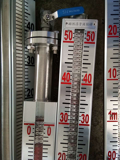 根據(jù)浮力原理,浮子在測(cè)量管內(nèi)隨液位的升降而上、下移動(dòng),浮子內(nèi)的永久磁鋼通過耦合作用,驅(qū)動(dòng)紅、白色翻柱翻轉(zhuǎn)180°,液位上升時(shí)翻柱由白色轉(zhuǎn)為紅色,下降時(shí)由紅色轉(zhuǎn)為白色,從而實(shí)現(xiàn)液位指示。