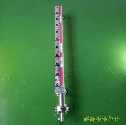 磁翻板液位計(也可稱為磁性浮子液位計)根據浮力原理和磁性耦合作用研制而成。當被測容器中的液位升降時,液位計本體管中的磁性浮子也隨之升降,浮子內的永久磁鋼通過磁耦合傳遞到磁翻柱指示器,驅動紅、白翻柱翻轉180°,當液位上升時翻柱由白色轉變為紅色,當液位下降時翻柱由紅色轉變為白色,指示器的紅白交界處為容器內部液位的實際高度,從而實現液位清晰的指示。