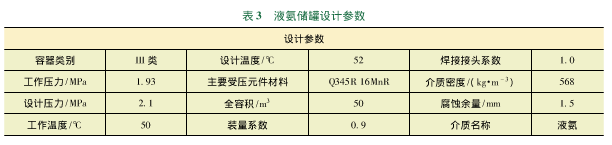 氨閥通常與凸面法蘭連接,按相應(yīng)壓力,通常高一個等級。在對密封要求嚴(yán)格的部位,一般選用截止閥,特別在高低壓有可能互竄的部位,一定要選用截止閥。對于泄漏閥門,平時做好登記,大檢修時集中進行更換。在更換前,必須對閥門逐臺進行水壓試驗,確保水壓試驗合格;對于容器底部的排凝閥,一般在檢修結(jié)束之后,在閥后加盲板,將排凝線盲死。車間新建酸性水汽提裝置液氨儲罐設(shè)計參數(shù)見表3。
