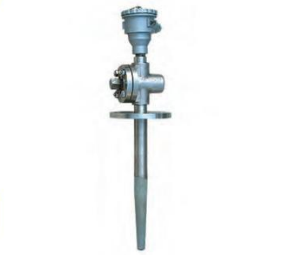 ②鎧裝熱電偶直徑d≤φ5mm,并裝有防濺式或防水式接線盒的產品,熱電偶露出設備部分。用戶在安裝時必須加裝支架等輔助支撐,增加其剛度,確保緊固,防止接線盒受振動而引起搖擺,損壞熱電偶。