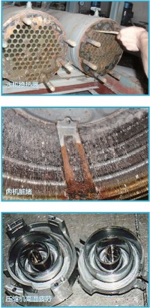 空調(diào)運(yùn)行時(shí)空氣中大量塵埃會(huì)層層包裹散熱片,并逐步堵塞散熱片之間的微小空隙,影響機(jī)器的散熱,此時(shí)壓縮機(jī)電流增大,運(yùn)轉(zhuǎn)時(shí)間延長(zhǎng),耗電量顯著增加。 實(shí)驗(yàn)表明,散熱片上的積灰厚度達(dá)0.3mm,壓縮機(jī)的工作時(shí)間將延長(zhǎng)一倍,空調(diào)的用電量增加2.4倍;(如一間房,清洗前降至設(shè)定溫度需要15分鐘;而清洗后降至設(shè)定溫度僅需十分鐘,則壓縮機(jī)可少工作5分鐘,從而結(jié)點(diǎn)30%)。 對(duì)于水系統(tǒng)而言,系統(tǒng)結(jié)垢1毫米,制冷效率下降34%,同時(shí)開啟兩臺(tái)制冷機(jī)組輸出的制冷能力,實(shí)際上變成只有一臺(tái)設(shè)備輸出的制冷量,隨著結(jié)垢程度的不斷增厚,制冷能力還會(huì)下降,能耗也會(huì)上升。 壓縮機(jī)正常情況下的工作溫度為50-58度,當(dāng)翅片積灰嚴(yán)重時(shí),由于無(wú)法充分散熱,壓縮機(jī)的溫度會(huì)上升到100度以上,壓縮機(jī)冷凍油基本上失去了潤(rùn)滑作用,其磨損也大大增加,故障率也會(huì)大幅提升。 |
