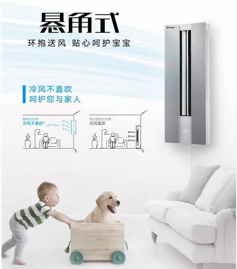 全新E-MAX α系列懸角式空調(diào),革命性的懸角設計,可懸掛于客廳轉(zhuǎn)角,為客廳釋放出更多黃金空間。