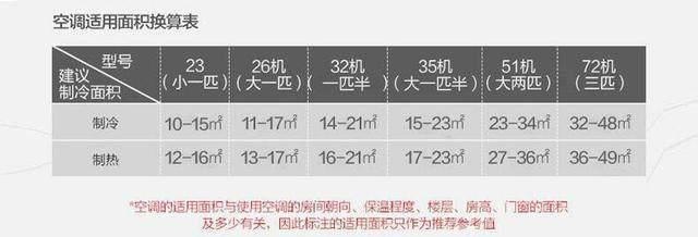 空調(diào)適用面積換算表