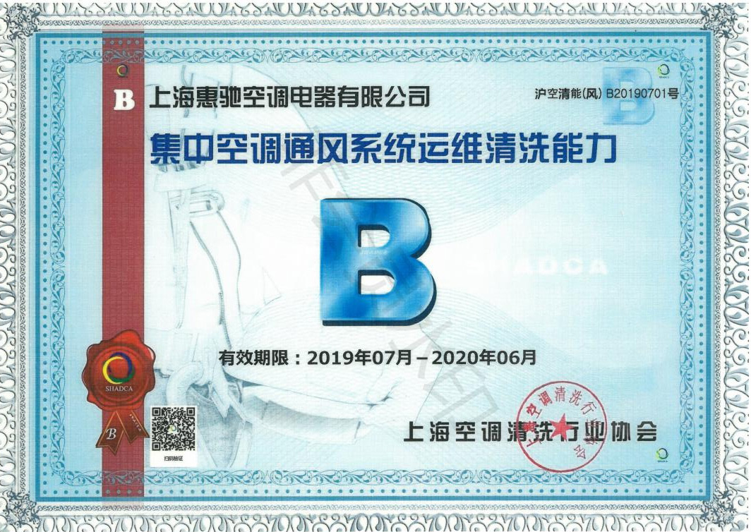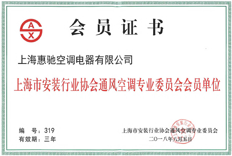 上海空調(diào)清洗行業(yè)協(xié)會(huì)會(huì)員證