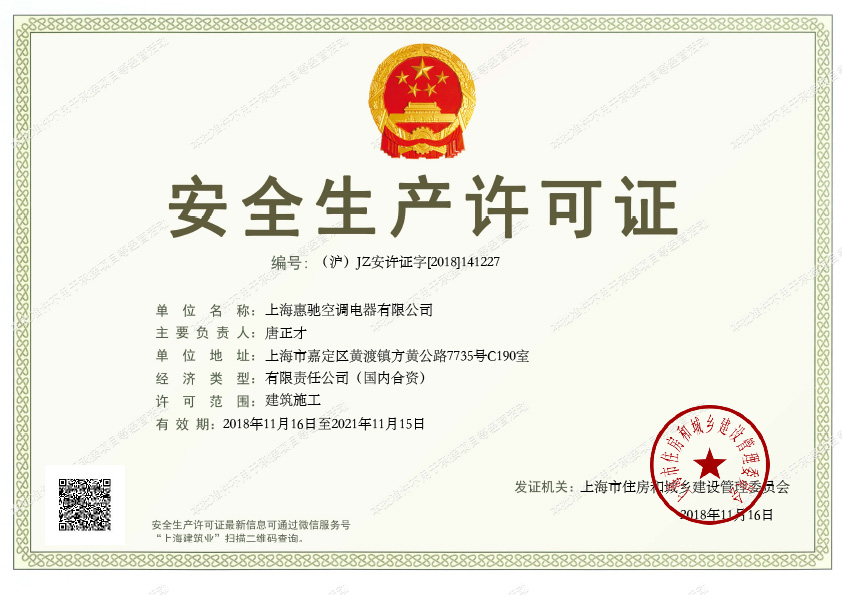 家用空調(diào)安裝維修資質(zhì)證書